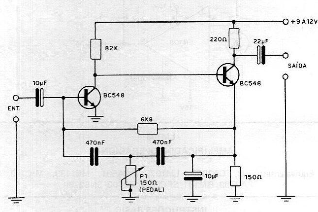 Este circuito de Wa-Wa o Uáu-Uáu se intercala entre la pastilla de la guitarra y la entrada del amplificador. Sin embargo, este circuito es para transductores de alta impedancia (cristal). Para transductores de baja impedancia, se debe usar un adaptador o una adaptación de impedancia en la entrada. El potenciómetro P1 está instalado en el pedal. El circuito tiene bajo consumo y puede ser alimentado por baterías o pilas, y los cables de entrada y salida de señal deben estar blindados para que no se produzcan zumbidos.