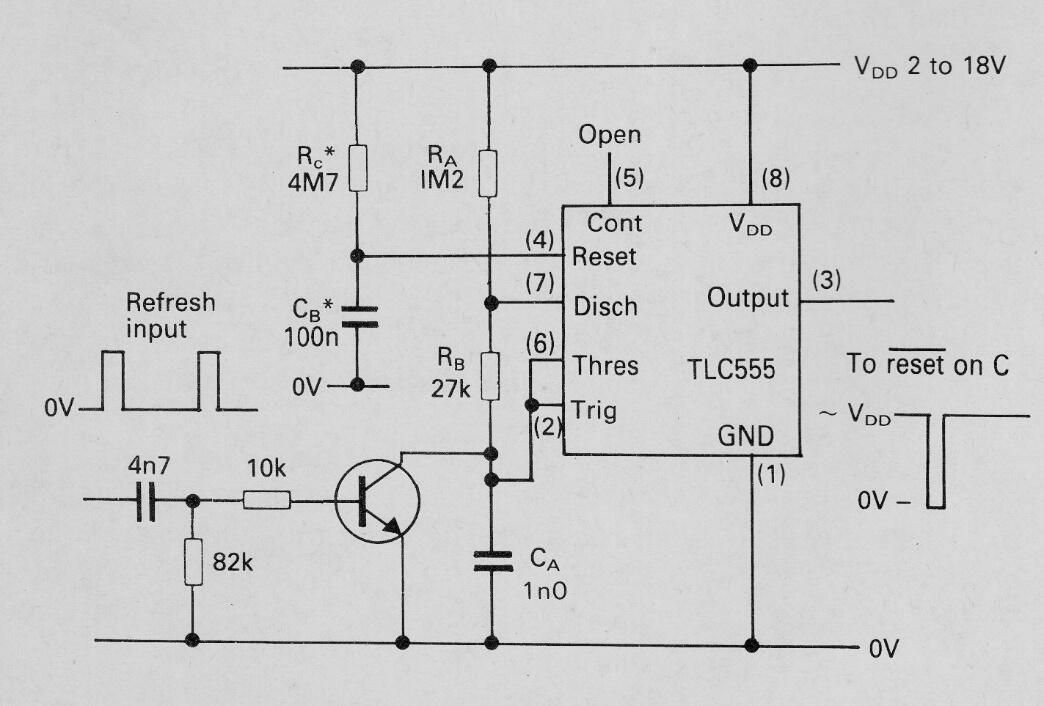 Este circuito monitorea los pulsos de reloj de un microcontrolador o microprocesador. Se obtuvo en um Linear Circuits Applications de Texas Instruments, edición de 1986. El transistor puede ser el BC548. La tierra del circuito debe ser común a la computadora. El condensador CB depende de la frecuencia del clock, al igual que Rc.
