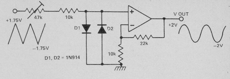 Este circuito se obtuvo en una vieja revista de 1983, pero aún se puede ensamblar fácilmente. El amplificador operacional puede ser el 741 u otro, alimentado por una fuente simétrica. La frecuencia de entrada máxima depende del amplificador, pero no supera los 100 kHz en la mayoría de los casos. Los diodos también pueden ser 1N4148.