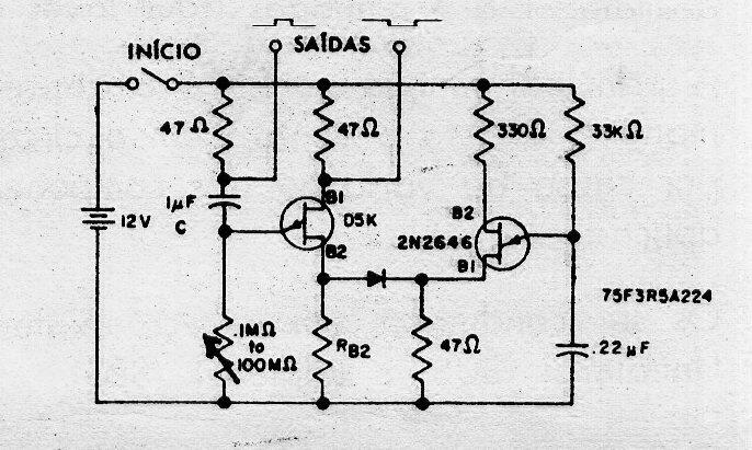 Este circuito es de una publicación de 1967. El potenciómetro sobre 4M7 es el componente crítico. Los pulsos de salida del circuito deben aplicarse a los pasos de control. Puede aumentar el valor de C para poder trabajar con potenciómetros de menor valor.