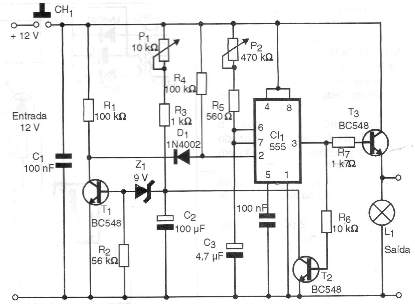 Encontramos este circuito en una publicación de 1998. El circuito tiene controles tanto para la frecuencia como para la intensidad de la señal. Se usa una lámpara para monitorear las señales. La alimentación se realiza con una tensión de 12 V.