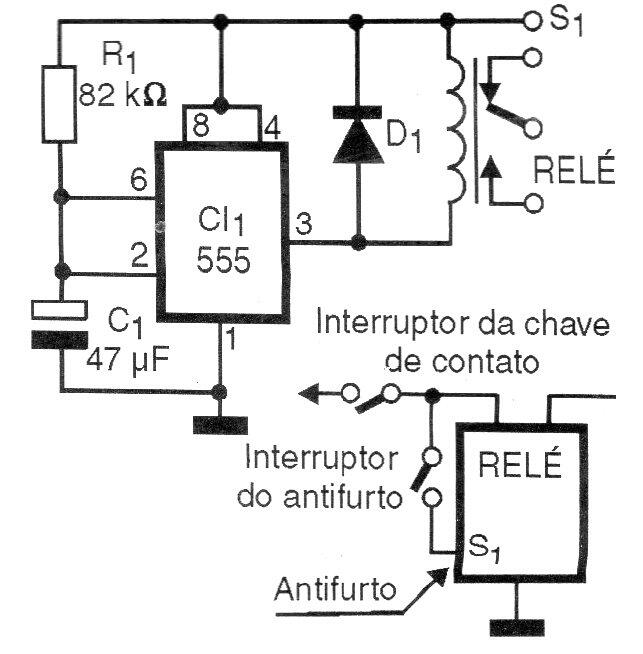 Este circuito es de documentación de 1998. El circuito provoca defectos en el sistema de encendido, impidiendo que el motor funcione correctamente, lo que lleva al ladrón a abandonar el coche. El circuito es para coches que tienen el sistema antiguo, como podemos ver por su método de instalación.