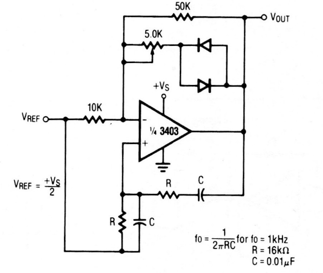 El amplificador operacional de este circuito no es muy común hoy en día, porque eliminamos el circuito de una documentación antigua. Sin embargo, el circuito se puede diseñar sobre la base de amplificadores operacionales modernos.
