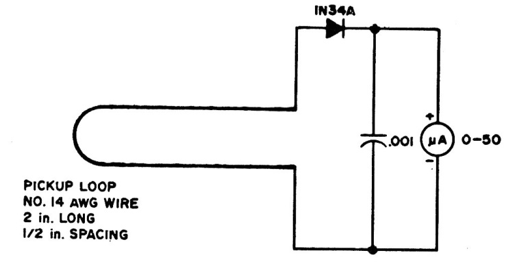 Cuando es abordado por un circuito que opera con señales de RF, este circuito las captura activando el instrumento indicador. El circuito opera en una amplia gama de frecuencias.