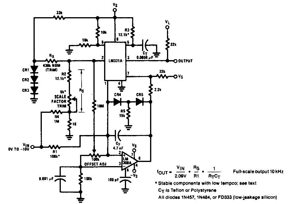Encontramos este circuito en una antigua documentación estadounidense. La precisión tiene un error de 0.02% y una no linealidad de 0.003% en un amplio rango de temperatura. El circuito hace uso de componentes inusuales en la actualidad.