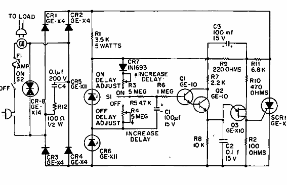 Encontramos este circuito en una documentación antigua de General Electric. La potencia máxima de la carga controlada depende del SCR.