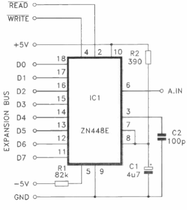 Indicado para aplicaciones con PC, este circuito fue obtenido en una publicación inglesa de 1992. El circuito integrado ZN448E no es común hoy en día.