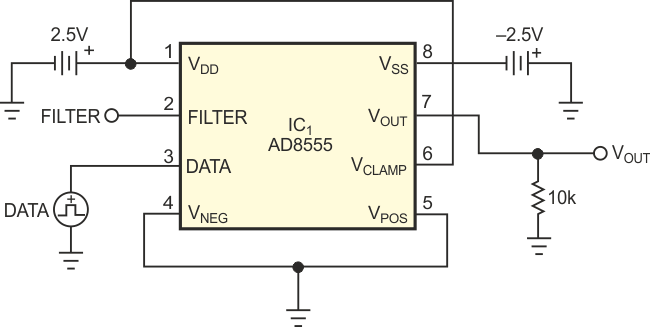 Este circuito con el AD8555 de Analog Devices proporciona una tensión programable con una capacidad de corriente de hasta 10 mA. Consulte la hoja de datos del componente para obtener más información sobre su programación.