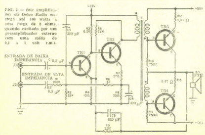 El componente crítico de este amplificador de 1967 es el transformador driver. El circuito tiene una entrada de alta y baja impedancia.