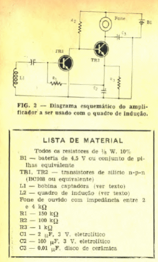 Este circuito simple, que hace uso de un auricular magnético de alta impedancia, fue encontrado en una Popular Electronics de septiembre de 1967. Los transistores son el germanio de la época y la bobina captadora debe tener muchas vueltas.