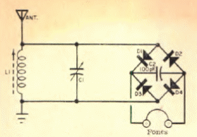 Encontramos esta radio galena con puentes rectificadores y detectores en una Popular Electronics desde 1968. Los diodos están hechos de germanio y el auricular debe ser de alta impedancia.