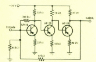 Este amplificador de 3 transistores se obtuvo de una Popular Electronics de septiembre/octubre de 1968. Los transistores pueden ser tipos equivalentes modernos.
