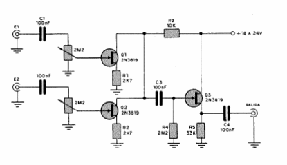 Esta configuración con transistores JFET es bien conocida y se puede encontrar con variaciones en otras partes de este sitio. Los FET admiten equivalentes de propósito general.