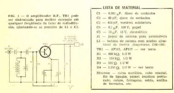 Encontrado en Popular Electronics de enero/febrero de 1969, este circuito estaba destinado a aumentar la sensibilidad de las radios de los automóviles que operan en el rango AM.