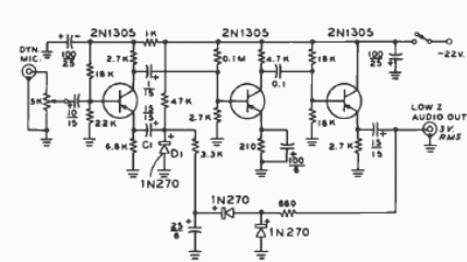 Este circuito se encontró en una publicación para radioaficionados de 1977. Los transistores son tipos comunes de propósito general en ese momento.
