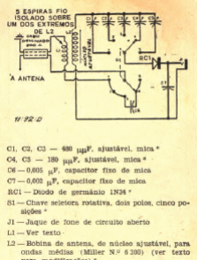 Esta radio con sintonización por llave selectora se encontró en una Popular Electronics de mayo de 1956. La escucha se realiza a través de un auricular de cristal o de alta impedancia.