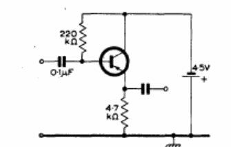Este es un circuito de paso de emisor común típico para transistores de propósito general. El suministro es de 4,5 V y la corriente del colector es de 0,5 mA. El circuito es de un manual Mullard de 1960.