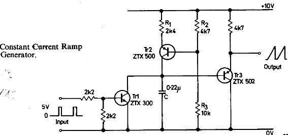 Encontramos este circuito en el manual de transistores de Ferranti de 1974. Los transistores son tipos de propósito general en ese momento.