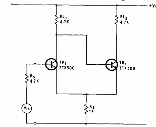 Encontramos este circuito en el manual de transistores Ferranti de 1974. Los transistores son de la época, siendo tipos de propósito general.