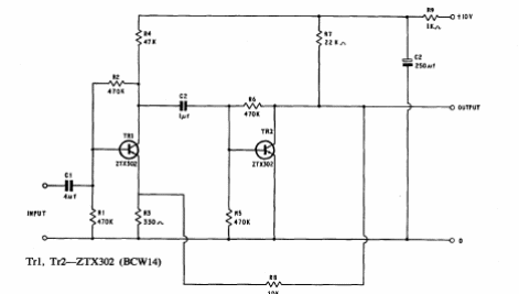 Este circuito fue tomado del manual de transistores Ferranti de 1974. Está diseñado para usar un instrumento común en un milivoltímetro sensible.