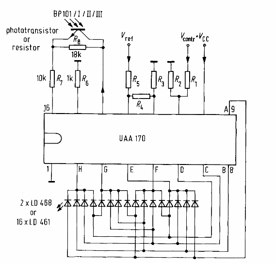 Este circuito de aplicación UAA170 se tomó del manual de circuitos integrados de Siemens de 1976. La tensión de alimentación máxima es de 18 V.