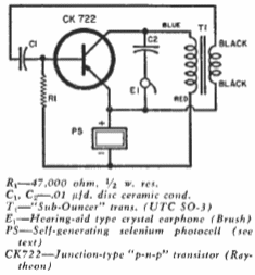 Este oscilador de bloqueo que aparece en otras partes de este sitio de otras fuentes se encontró en un manual de Raytheon de los años 60. El transistor está hecho de germanio.