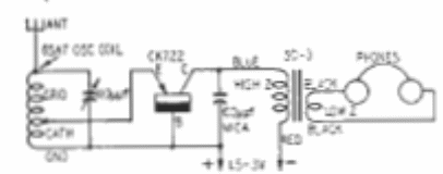 Esta simple radio de 1 transistor se encontró en el manual de transistores de Raytheon. El transistor es de germanio de los años 60.