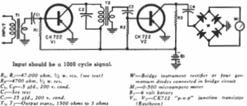 Este puente se encontró en un manual de transistores Raytheon de la década de 1960. Los transistores son de germanio de la época.