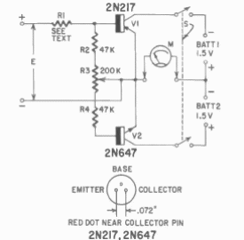 El propósito de este circuito es aumentar la sensibilidad de un instrumento indicador. Lo encontramos en una documentación de Gernsback de 1960. El instrumento indicado es de 100 uA.