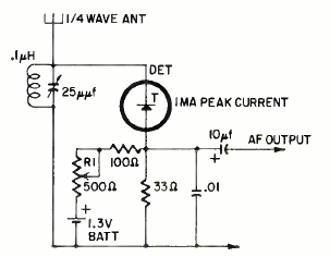 En la figura tenemos un sintonizador de FM sencillo que utiliza un diodo túnel. Se puede adaptar a otros rangos de frecuencia. El circuito es de una Radio Electronics de noviembre de 1962;