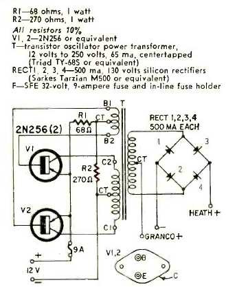 Encontrado en la revista Radio Electronics de noviembre de 1960. El circuito genera altas tensiones continuas para aplicaciones de válvulas. Los transistores deben estar equipados con disipadores de calor.