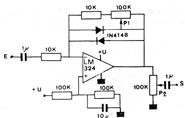Este circuito puede ser intercalado entre guitarras y otros instrumentos para dar el efecto de distorsión fuzz. El circuito no utiliza fuente simétrica y los cables de señal deben ser blindados. La alimentación se puede hacer con una batería de 9 V, ya que el consumo es muy bajo.