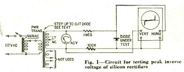 Este circuito para probar diodos zener elevando su curva en un osciloscopio se presentó en la revista Radio Electronics en enero de 1961. El voltaje aplicado debe ser ligeramente mayor que el voltaje zener.