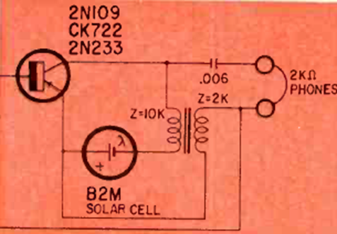 Este sencillo oscilador con fotocélula fue encontrado en una Radio Electrónica de enero de 1965. El auricular es de alta impedancia y el capacitor determina la frecuencia.