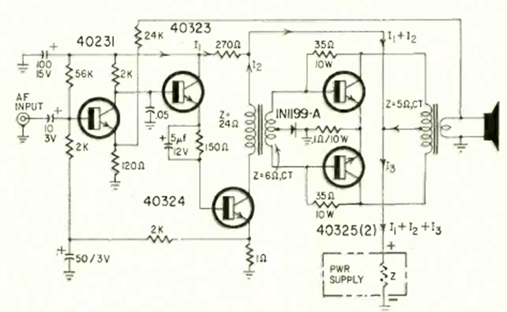 Este circuito es de Radio Electronics de febrero de 1966. El circuito es de un tipo que se encontraba en muchas aplicaciones en ese momento como salida de radios, televisores y otros equipos.