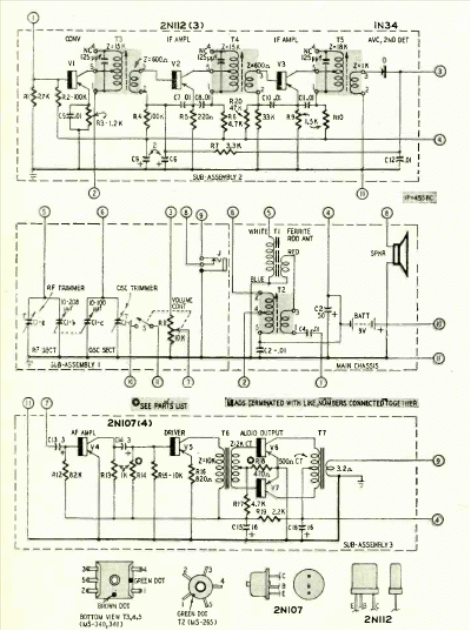 Esta pequeña radio transisterizada fue publicada en la revista Radio Electronics de noviembre de 1957. El circuito tiene su montaje descrito en bloques formados por 3 módulos que se interconectan en un conjunto apilado.