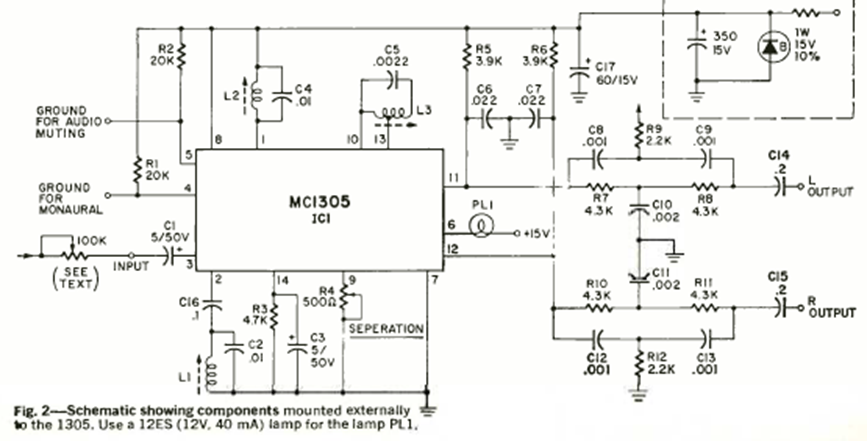 Este circuito es de Radio Electronics de marzo de 1970. El circuito integrado utilizado es uno de los primeros para este propósito, siendo mejorado posteriormente dando lugar a tipos que lo siguieron.