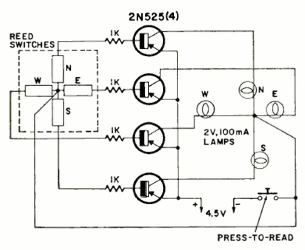 Esta “manga de viento” electrónica se activa mediante un sistema de conmutación con imanes. Fue encontrado en una Radio Electrónica de octubre de 1969. El sistema de accionamiento está realizado con interruptores de láminas.