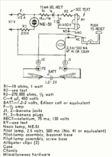 Este circuito lo encontramos en la revista Radio Electronics de enero de 1958. Utiliza una lámpara de neón como único elemento “activo”. El relé es del tipo de alta tensión.