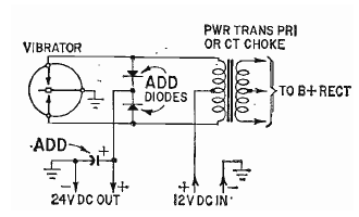 Este circuito es de una revista de Radio Electronics de febrero de 1962. Utiliza un viejo vibrador utilizado en los automóviles para alimentar radios de válvulas. La tensióne generada depende del transformador.