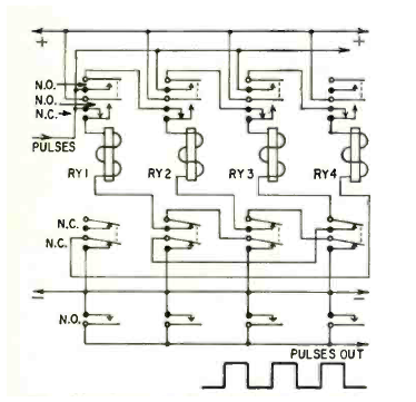 Este circuito de accionamiento de relé up-down abajo para aplicaciones de automatización se encontró en la revista Radio Electronics de octubre de 1961. El circuito utiliza relés según la tensión de alimentación.