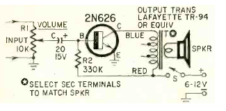 El transistor utilizado es uno de los primeros Darlington de potencia con una corriente de colector de 3 A. El paso que se muestra apareció en la revista Radio Electronics de junio de 1961.