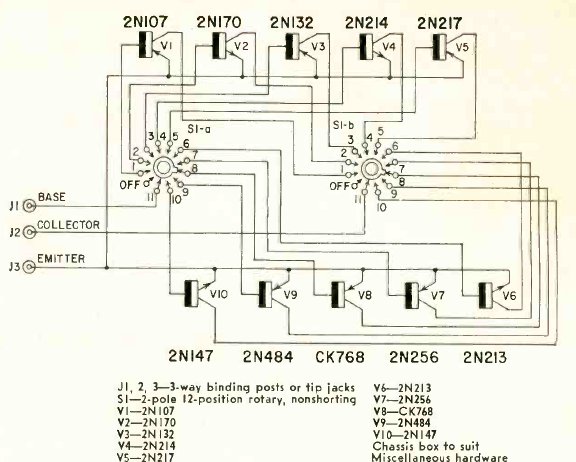 Este circuito para el experimentador de los años 60 permitió probar los transistores más habituales en los proyectos realizados. El circuito es de una Radio Electrónica de febrero de 1960.