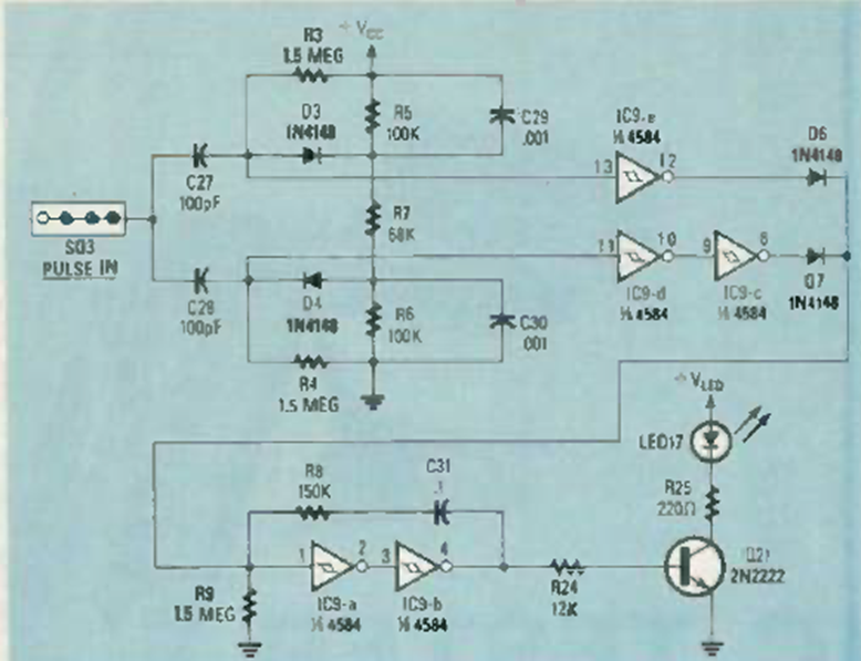 Encontramos este circuito en la revista Radio Electronics de septiembre de 1985. Utiliza circuitos integrados CMOS y es parte de un proyecto de prueba de circuitos integrados más amplio.