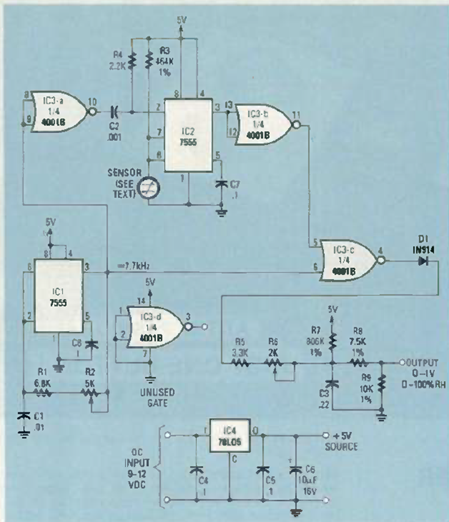 Utilizando un sensor de la época, este circuito se encontró en la revista Radio Electronics de febrero de 1986. El sensor es de Philips en ese momento.