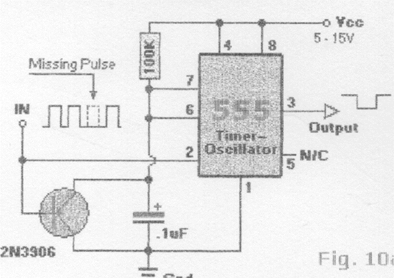 Este circuito se reactiva cuando llega un nuevo pulso. Lo hace descargando el capacitor. El circuito proviene de documentación de los años 80. El transistor puede ser cualquier transistor de propósito general.