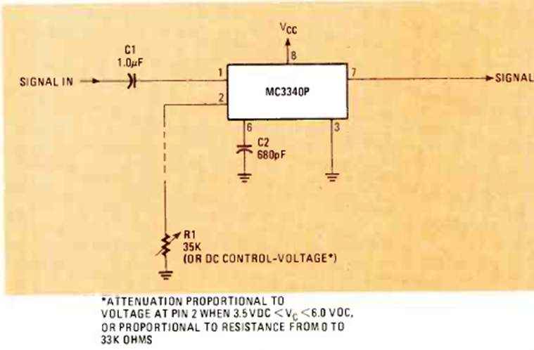 Este circuito fue encontrado en la revista Radio Electronics de febrero de 1981. El circuito utiliza un componente activo del tiempo y es adecuado para señales de audio.