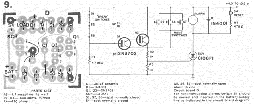 Este circuito, con placa de circuito impreso incluida, es de una revista de Radio Electronics de julio de 1971. El SCR puede ser cualquier equivalente de la serie 106.