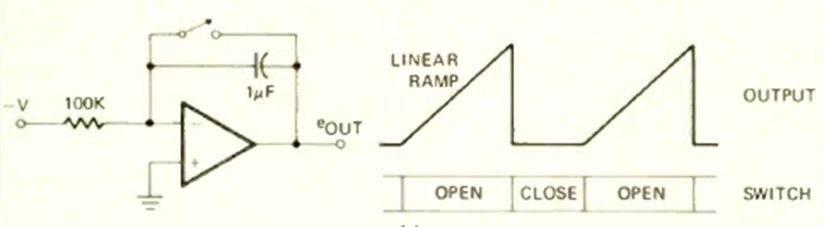 Este circuito de Radio Electronics de julio de 1975 utiliza cualquier funcionamiento con una fuente simétrica. La forma de onda se muestra al costado del diagrama.