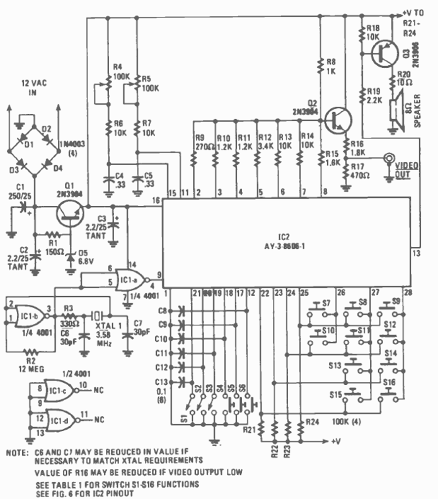 Este videojuego es más de la serie AY3 con el circuito integrado AY3-3606. El circuito se encontró en la revista Radio Electronics de septiembre de 1980. El circuito no incluye alimentación de entrada.